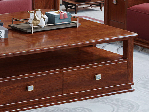 宝瑞·檀风 新中式 印尼金花梨木框架+多层实木板贴皮 紫檀色 1.45米茶几¥2710