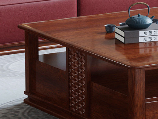 宝瑞·檀风 新中式 印尼金花梨木框架+多层实木板贴皮 紫檀色 1.45米茶几¥3085