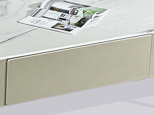 甄品家具 现代简约 蓝金沙微晶石7.5MM+E1级环保板材+抽面贴马鞍皮+烤漆工艺 1.3米茶几¥2113