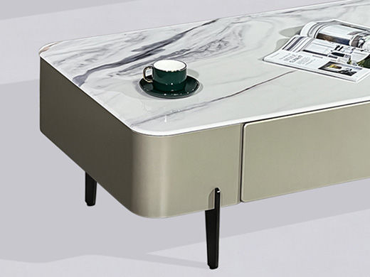 甄品家具 现代简约 烤漆柜体+亮光卡拉白岩板+五金脚架 1.3米茶几¥2113