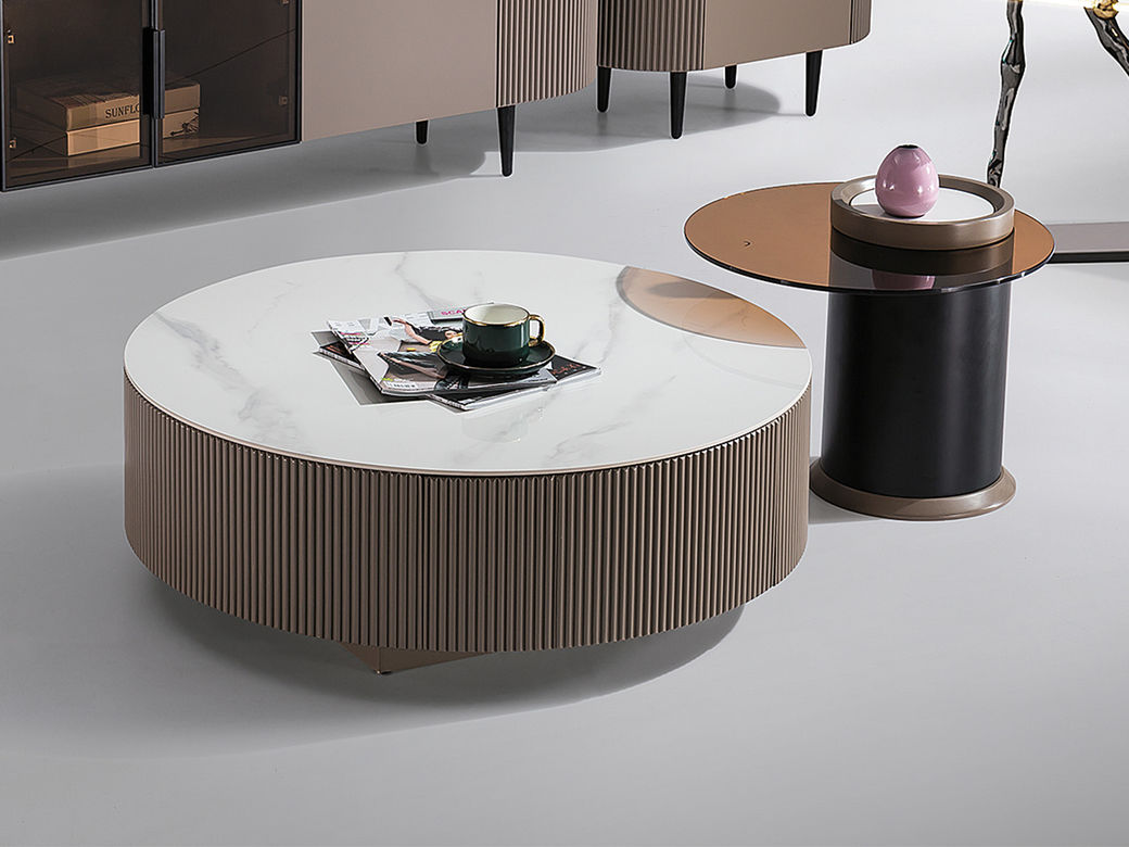 甄品家具 现代简约 烤漆柜体+哑光雪山石岩板+碳素钢脚架 1.3米茶几¥2304