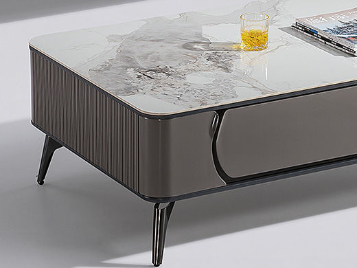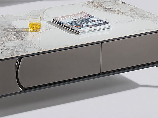 甄品家具 现代简约 烤漆柜体+亮光香奈儿岩板+五金脚架 1.3米茶几 |