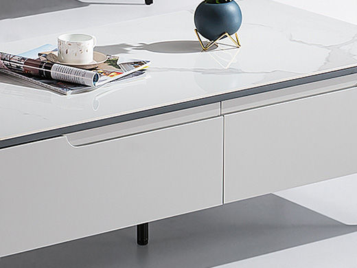 甄品家具 现代简约 烤漆柜体+亮光雪山石岩板+五金脚架 1.2米茶几 |