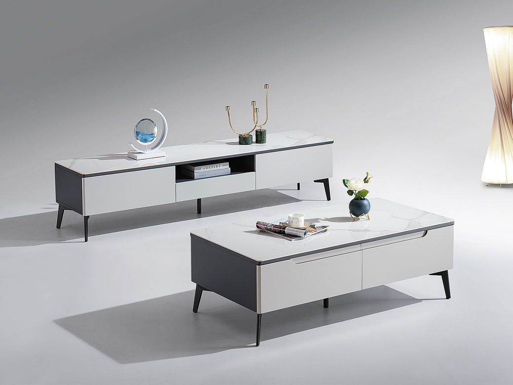 甄品家具 现代简约 桌面:岩板脚架:碳素钢黑砂+烤漆柜体 0.8米组合茶几¥2032