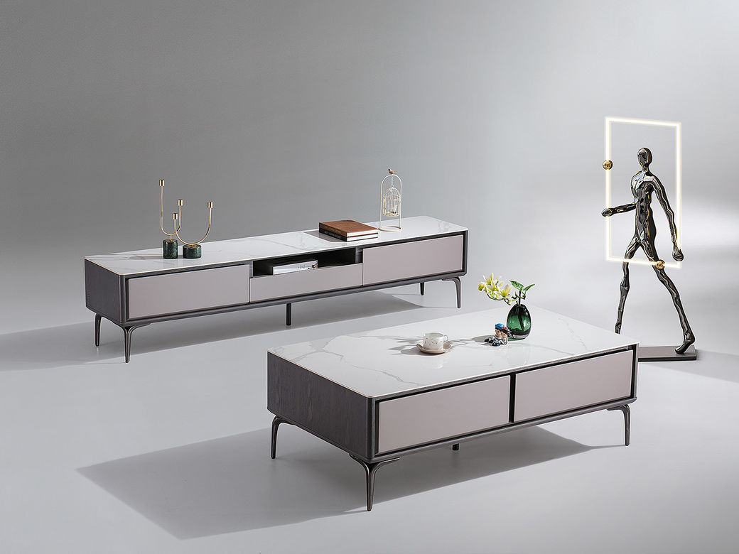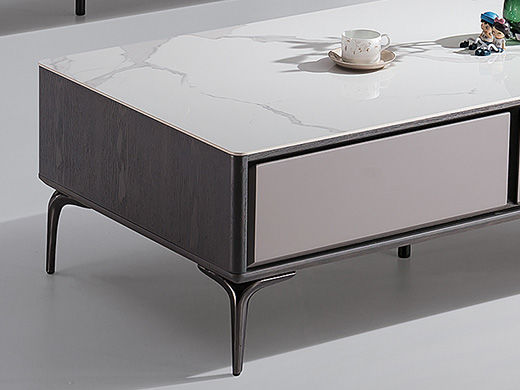 甄品家具 现代简约 烤漆柜体+亮光雪山石岩板面+枪色五金脚架 1.3米茶几¥2304