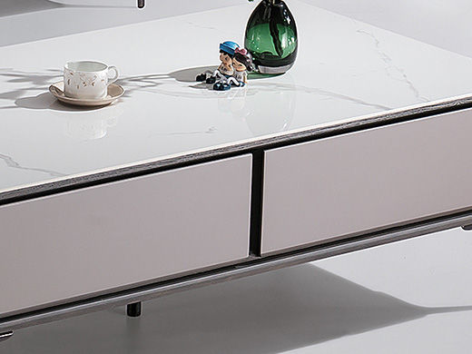 甄品家具 现代简约 烤漆柜体+亮光卡拉白岩板+五金脚架 1.3米茶几