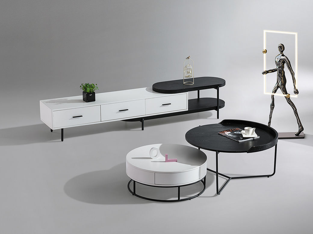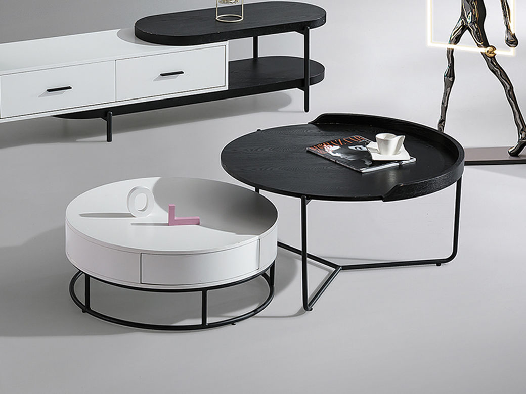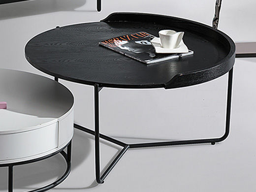 缔造 极简 黑玖瑰天然石面+ 碳素钢喷哑黑色脚 0.8米茶几