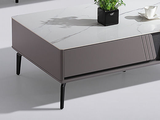 甄品家具 现代简约 烤漆柜体+亮光雪山石岩板面+枪色五金脚架 1.3米茶几¥2304