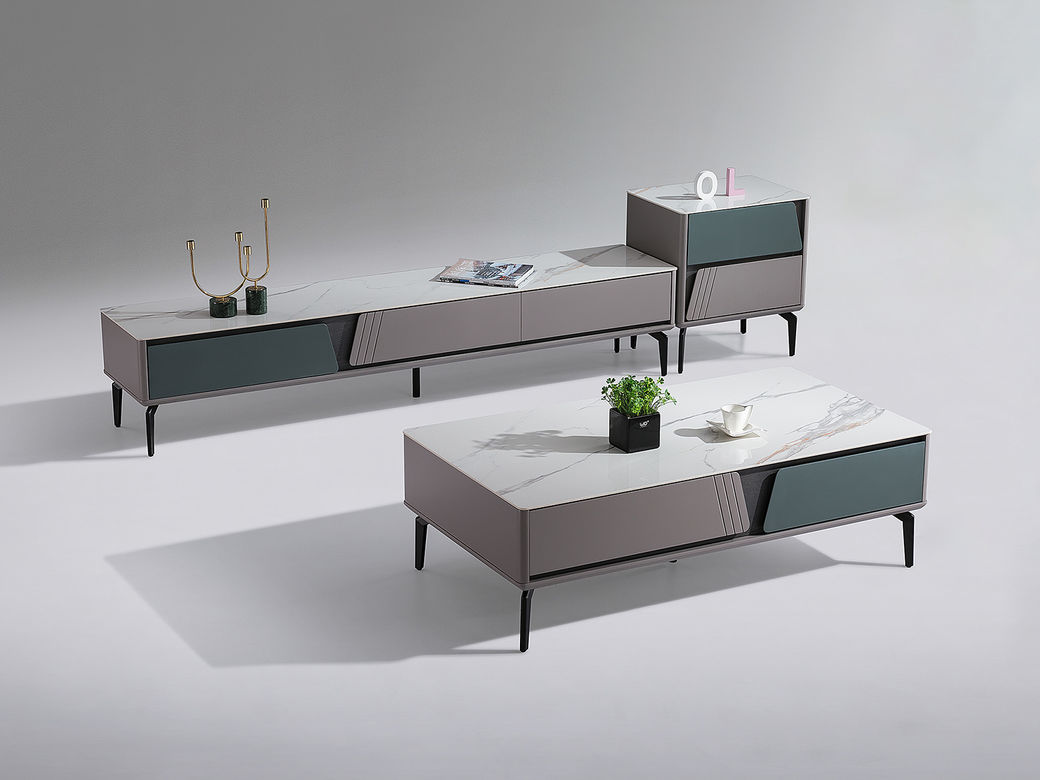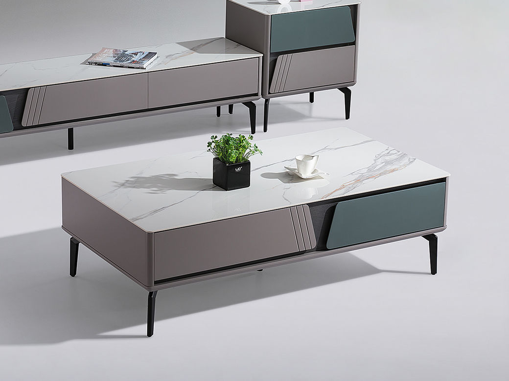 甄品家具 现代简约 桌面:岩板脚架:碳素钢黑砂+烤漆柜体 0.8米组合茶几¥2032