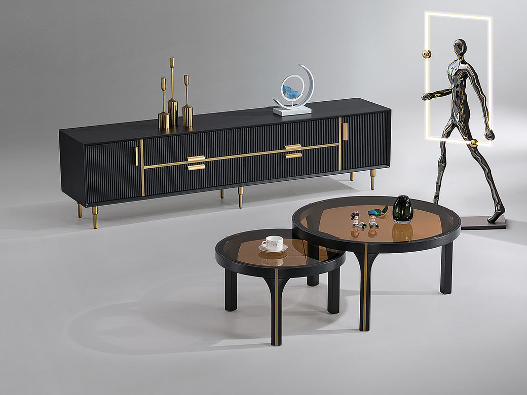 小红书系列 现代简约 桌面:钢化水纹波玻璃脚架:不锈钢黑钛+马鞍皮 1米组合茶几