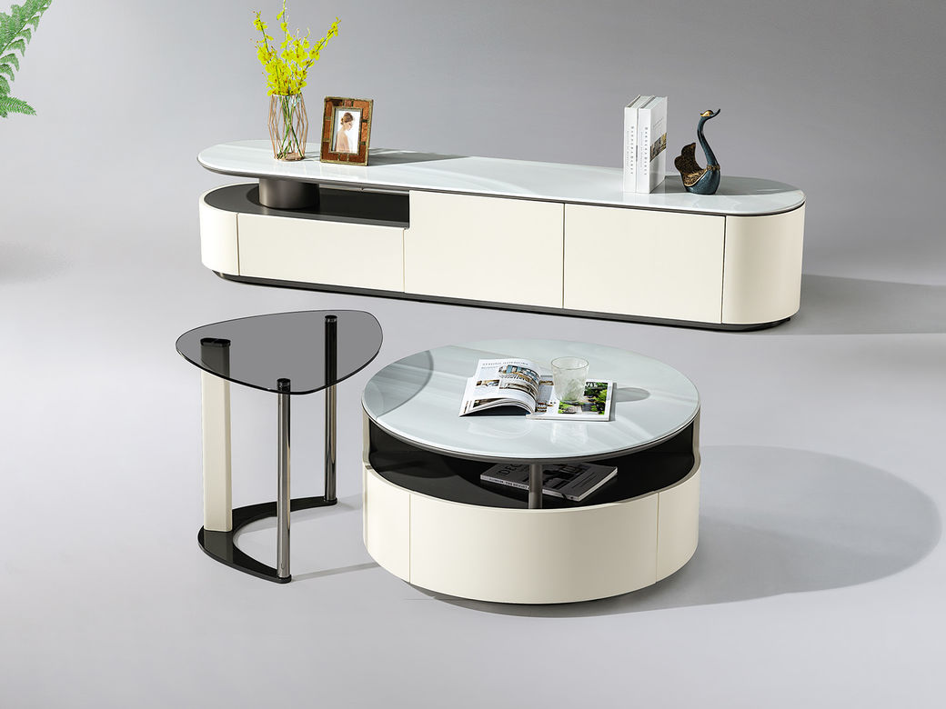 甄品家具 现代简约 烤漆柜体+亮光卡拉白岩板+五金脚架 1.3米茶几¥2113