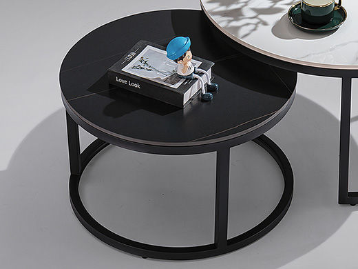 甄品家具 现代简约 桌面:岩板 脚架:黑砂碳素钢 0.8米茶几