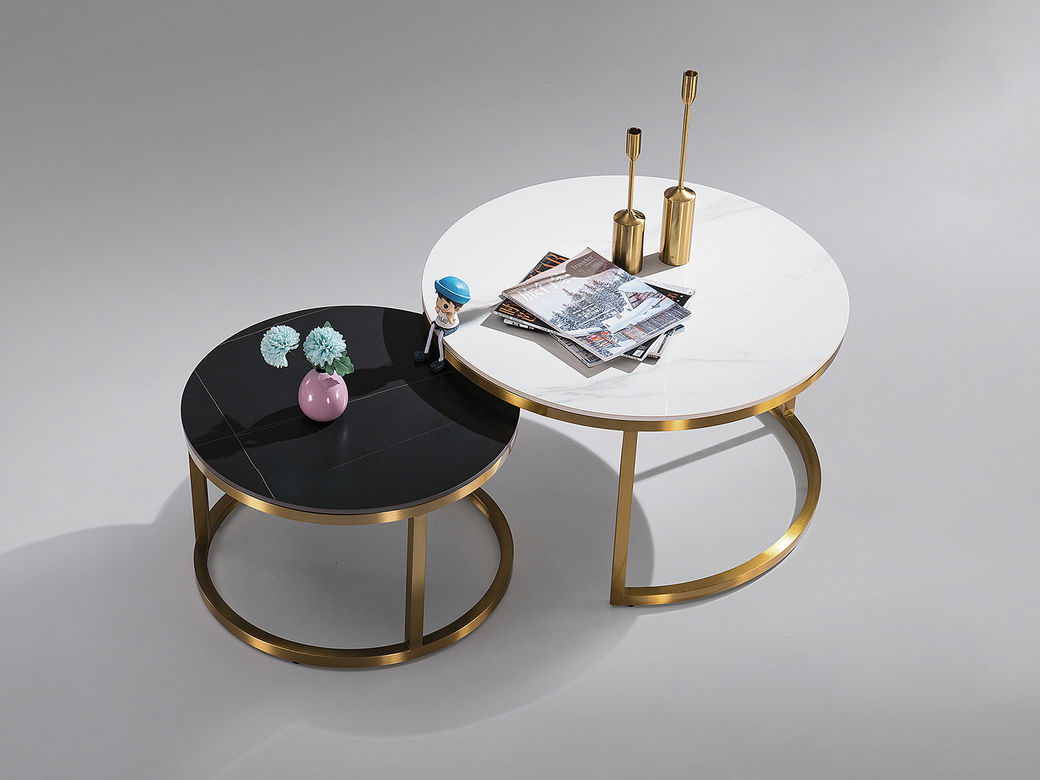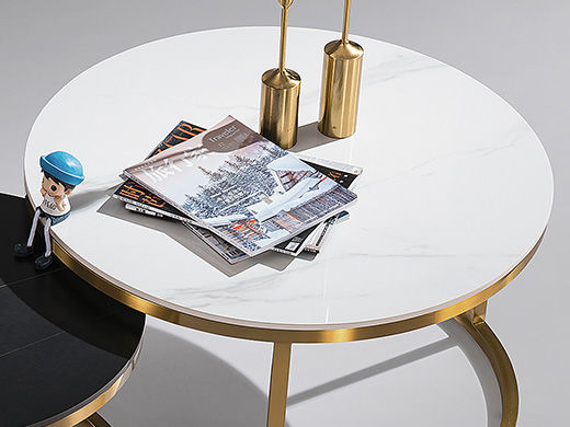 甄品家具 现代简约 桌面:岩板脚架:不锈钢钛金 0.8米组合茶几
