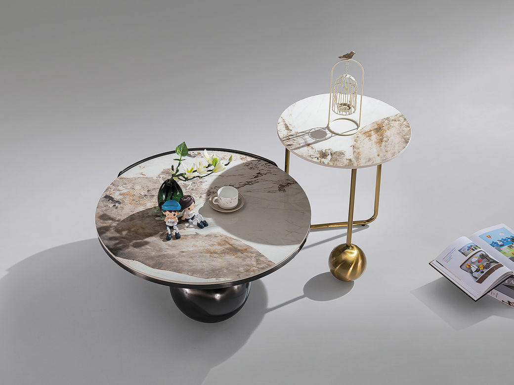 小红书系列 现代简约 桌面:岩板+底板脚架:不锈钢钛金+黑钛 0.8米组合茶几