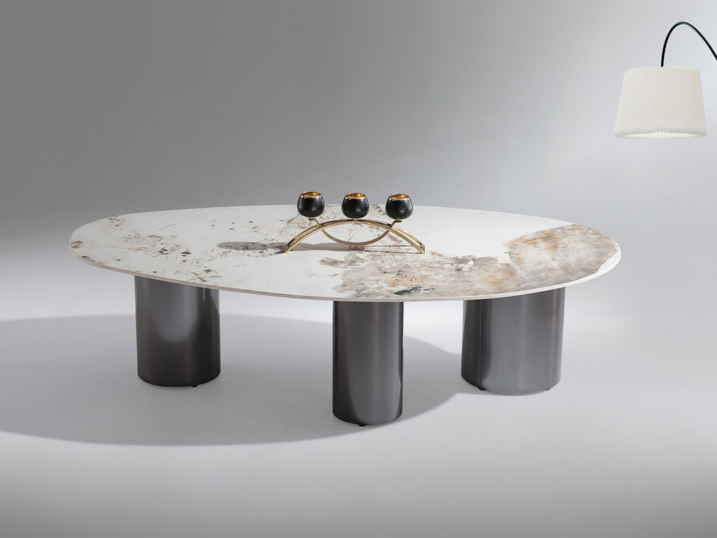 小红书系列 现代简约 桌面:9mm岩板3D打印-灰网脚架:钛金底盘+水晶中柱 0.45米边几