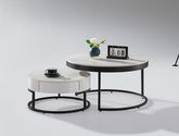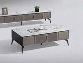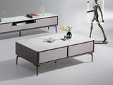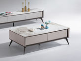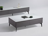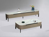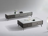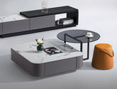 小红书系列 现代简约 桌面:岩板+钢化玻璃脚架:大象灰木皮柜体+转轴+不锈钢底架+大理石边几+钢化玻璃 1.07米组合茶几¥4999