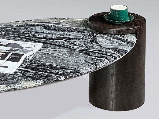 甄品家具 现代简约 板木结合烟熏木皮+威尼斯棕大理石台面 1.5米茶几