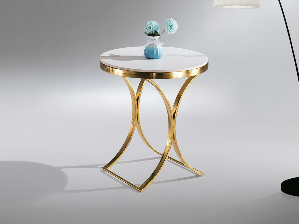 甄品家具 现代简约 桌面:岩板脚架:不锈钢钛金 0.5米边几