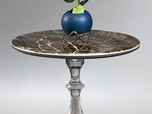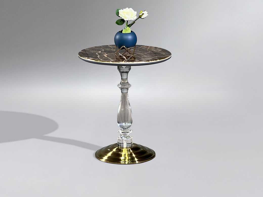 小红书系列 现代简约 桌面:9mm岩板3D打印-灰网脚架:钛金底盘+水晶中柱 0.45米边几