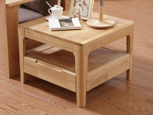 简森曼 北欧风 面板 脚为橡胶木多 层板 抽屉底板侧板为多层板 抽屉尾板为松木 原木色 0.6米边几 【实木拼接工艺】