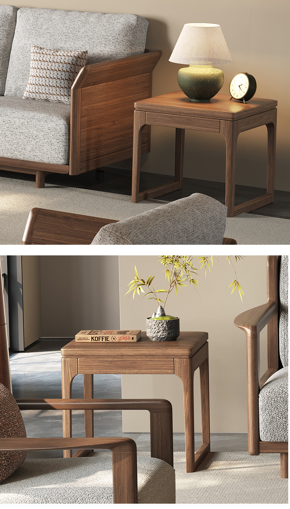 墨云阁 中古风 南美胡桃木+多层实木板 胡桃色 0.6米方几