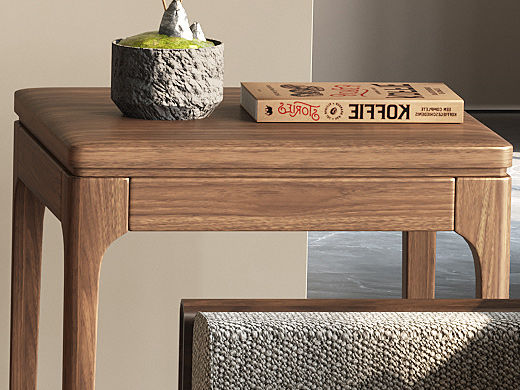 墨云阁 中古风 南美胡桃木+多层实木板 胡桃色 1.1米茶几