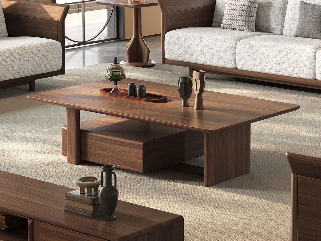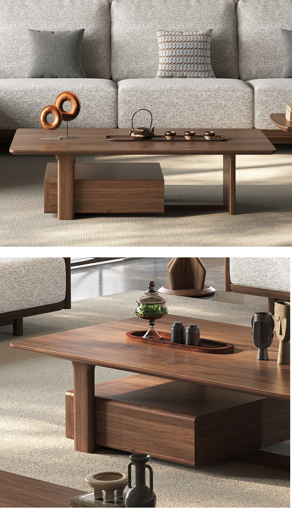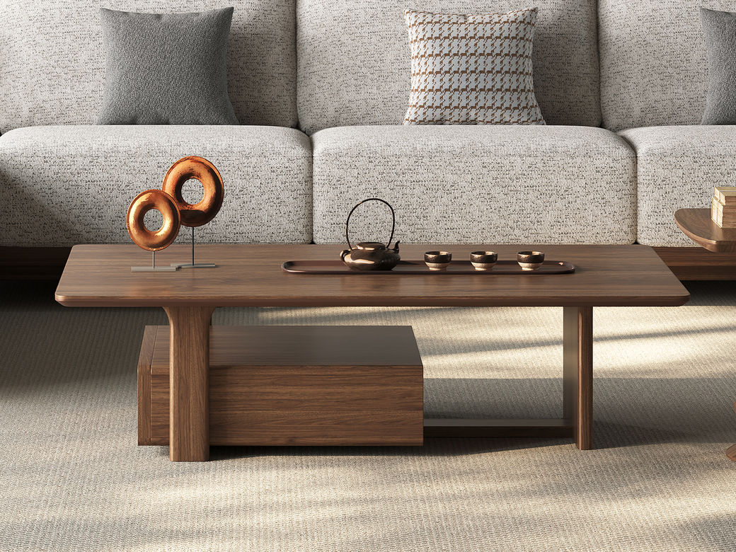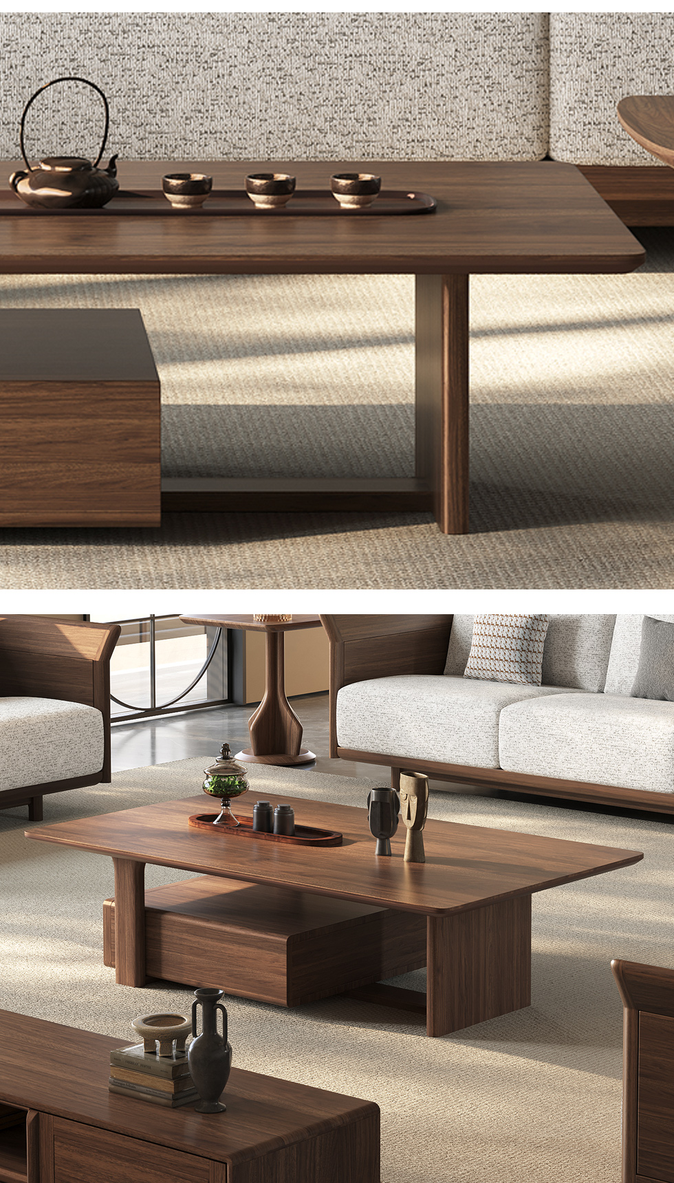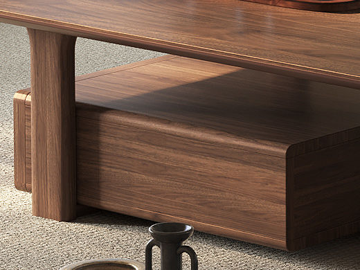 墨云阁 中古风 南美胡桃木+多层实木板+静音导轨 胡桃色 1.3米茶几 |