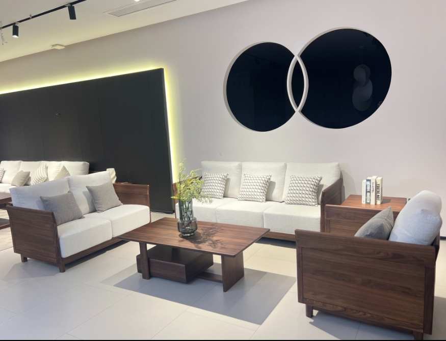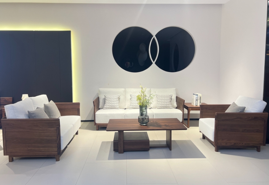 墨云阁 中古风 南美胡桃木+多层实木板 胡桃色 1.1米茶几