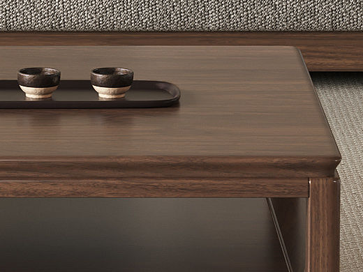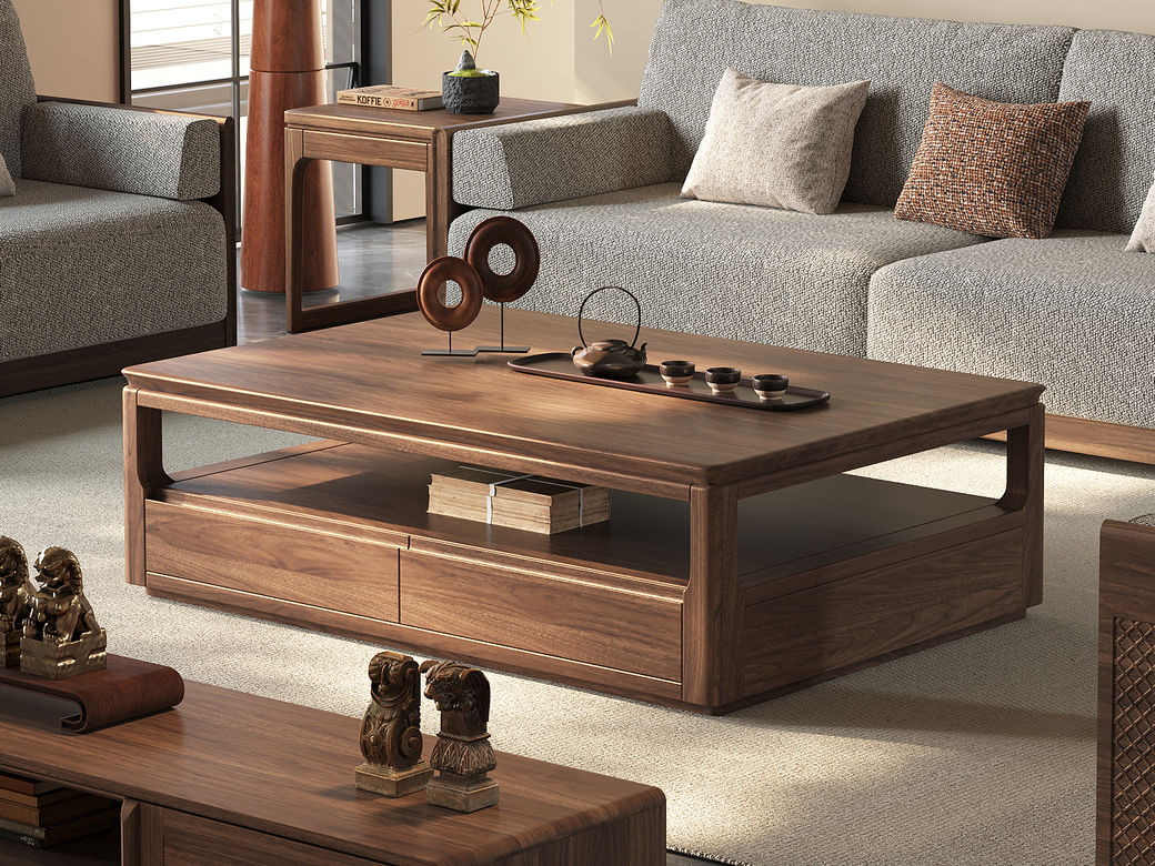 墨云阁 中古风 南美胡桃木+多层实木板 胡桃色 1.1米茶几