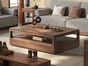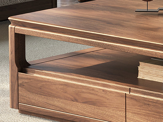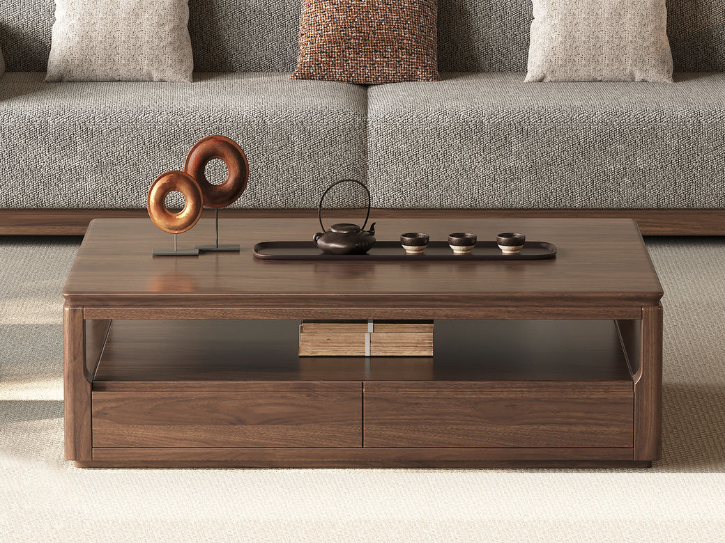 墨云阁 中古风 南美胡桃木+多层实木板+静音导轨 胡桃色 1.3米茶几