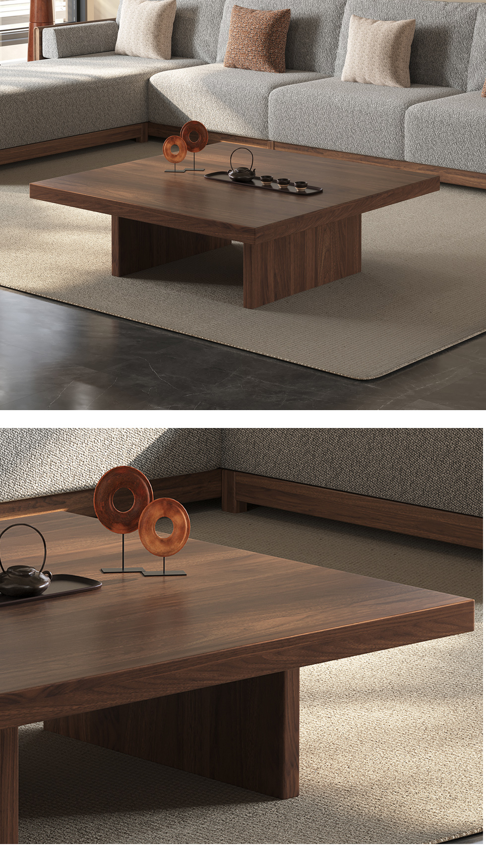 墨云阁 中古风 南美胡桃木+多层实木板 胡桃色 0.5米方几¥3861