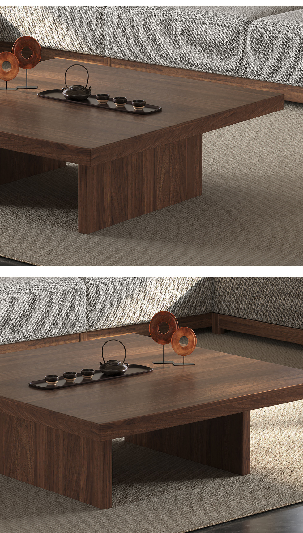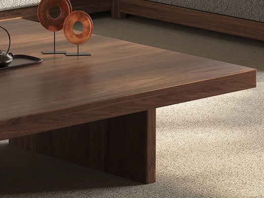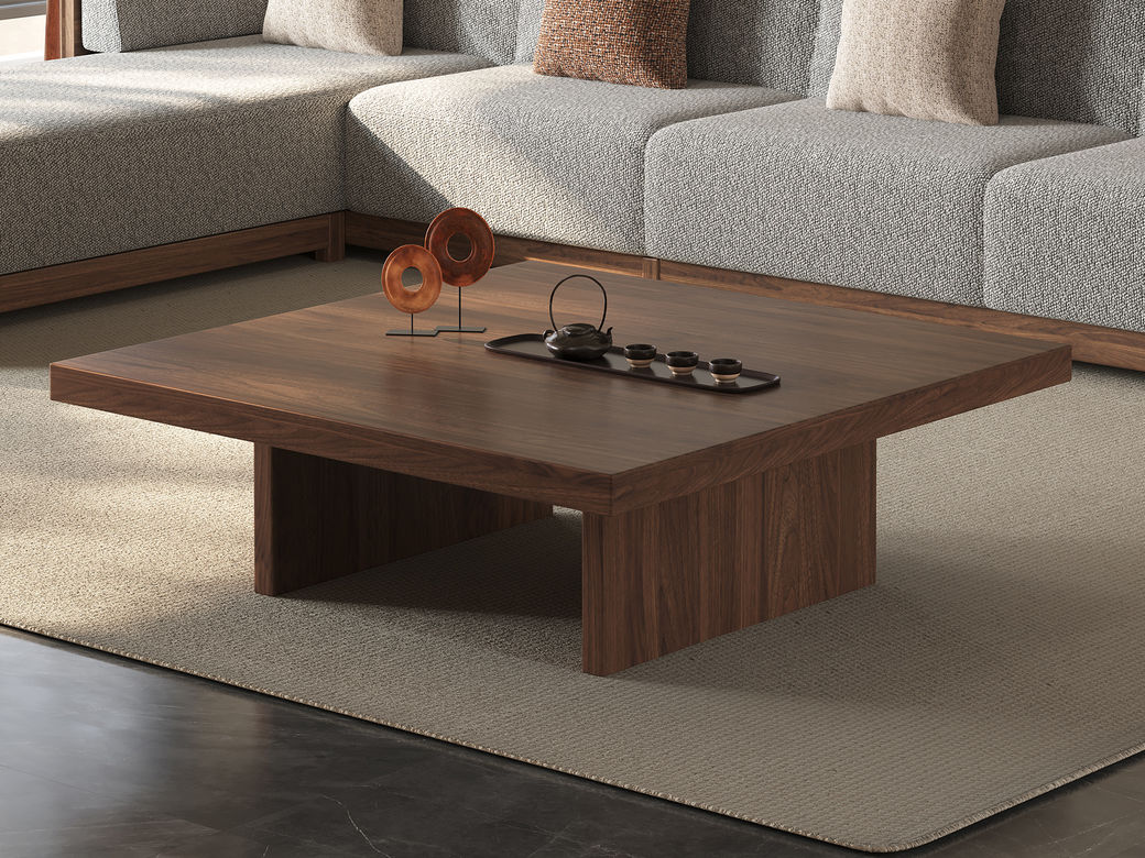 墨云阁 中古风 南美胡桃木+多层实木板 胡桃色 1.1米茶几