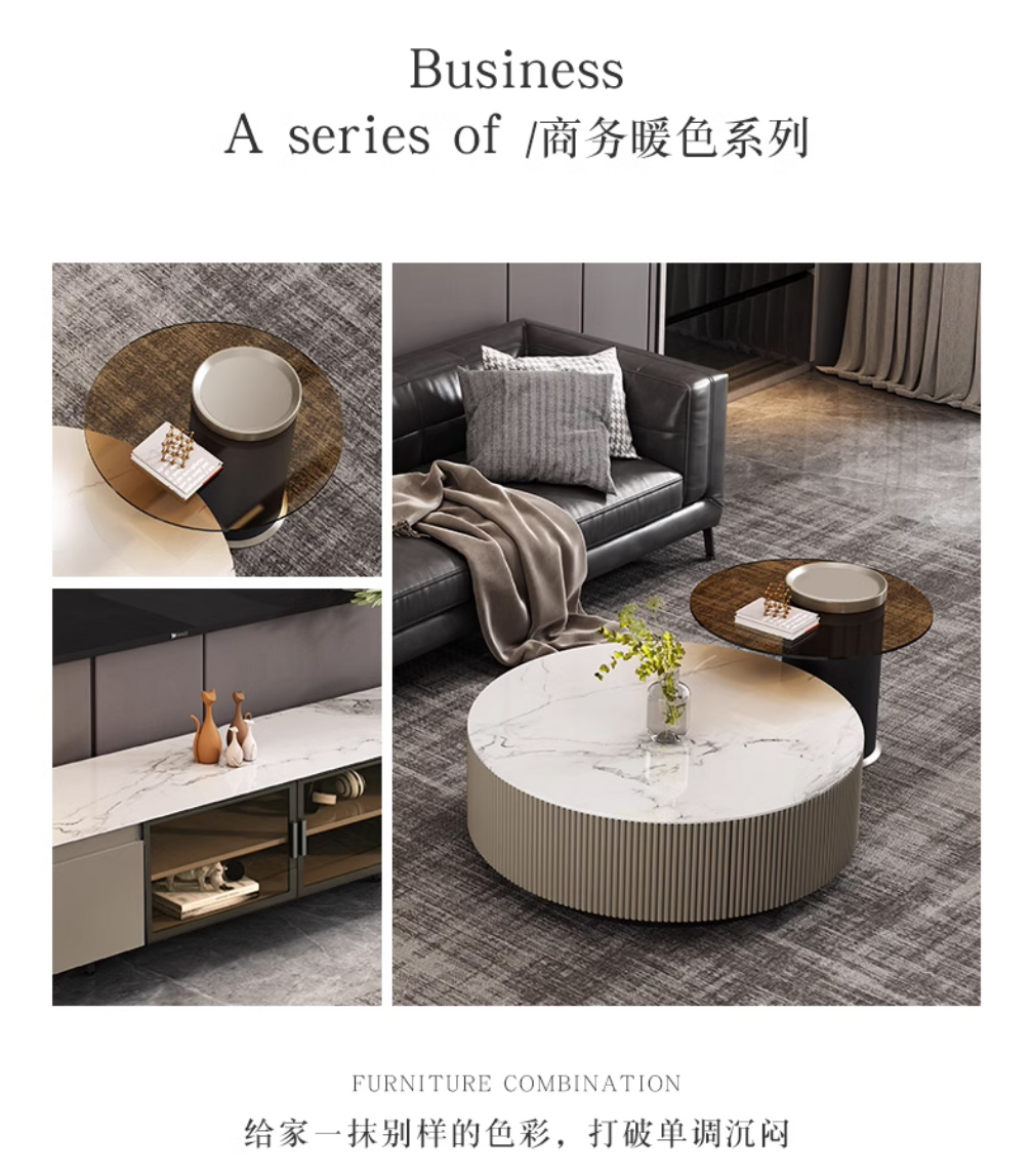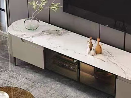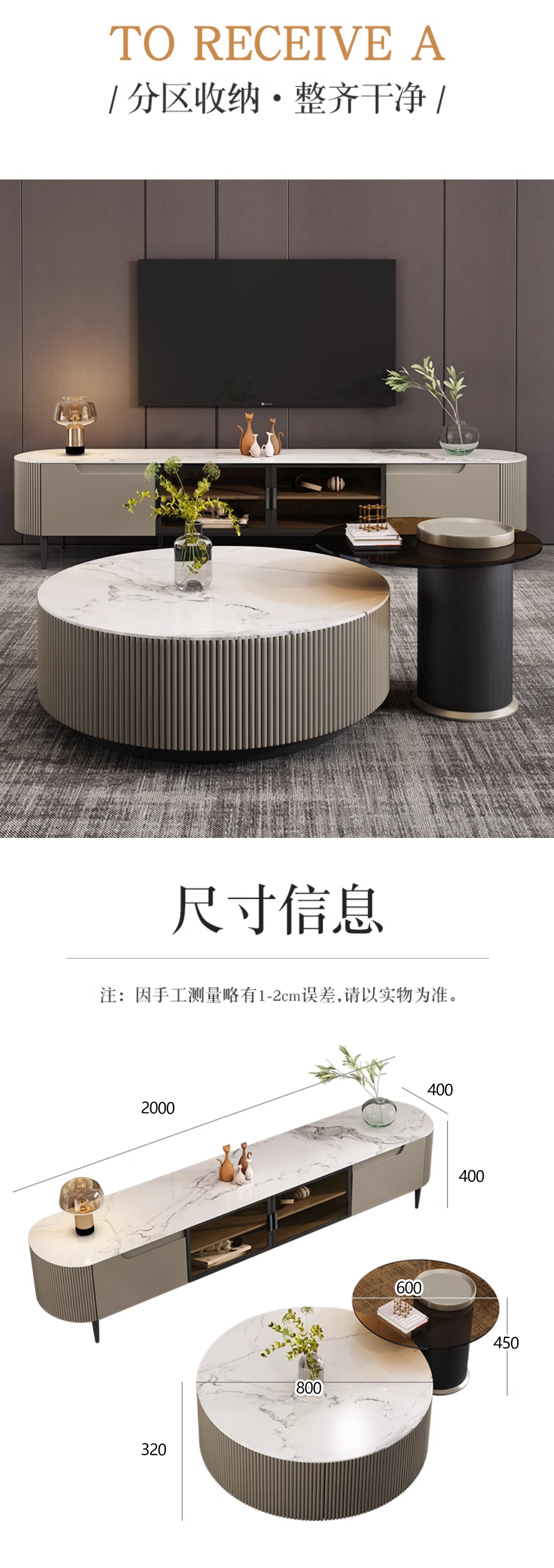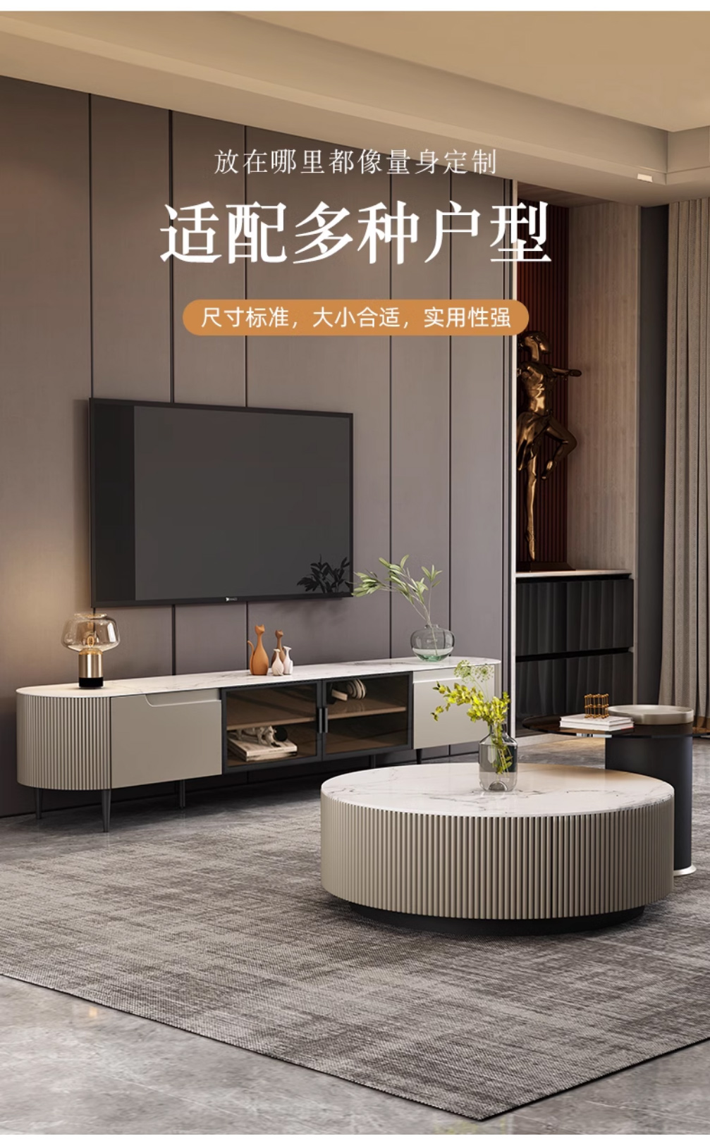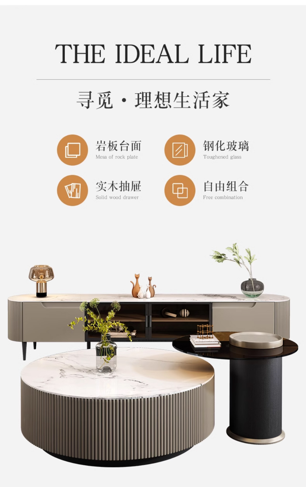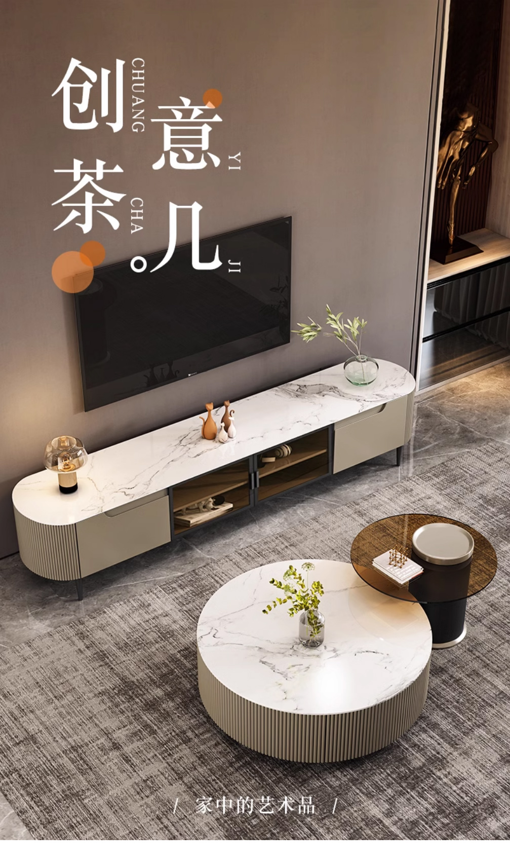 【套餐专享价】每屋优享系列 现代简约 烤漆柜体+亮光雪山石 岩板台面 组合茶几+2米电视柜(未开电源孔)(不含边柜) |