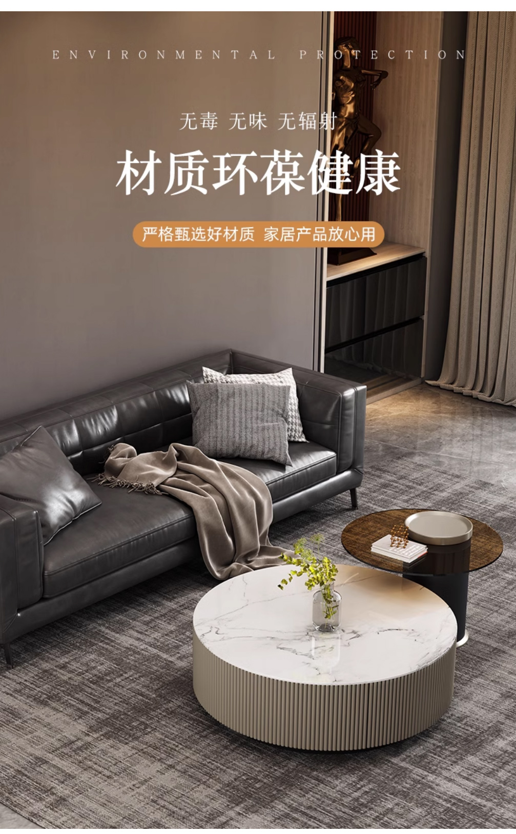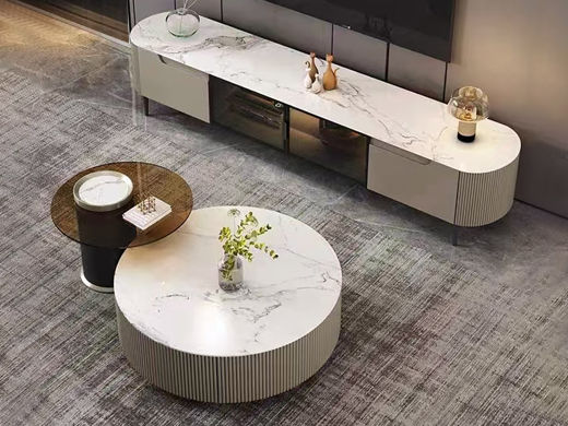 【套餐专享价】每屋优享系列 现代简约 碳素钢脚架+岩板 香奈儿 0.8米组合茶几¥1631