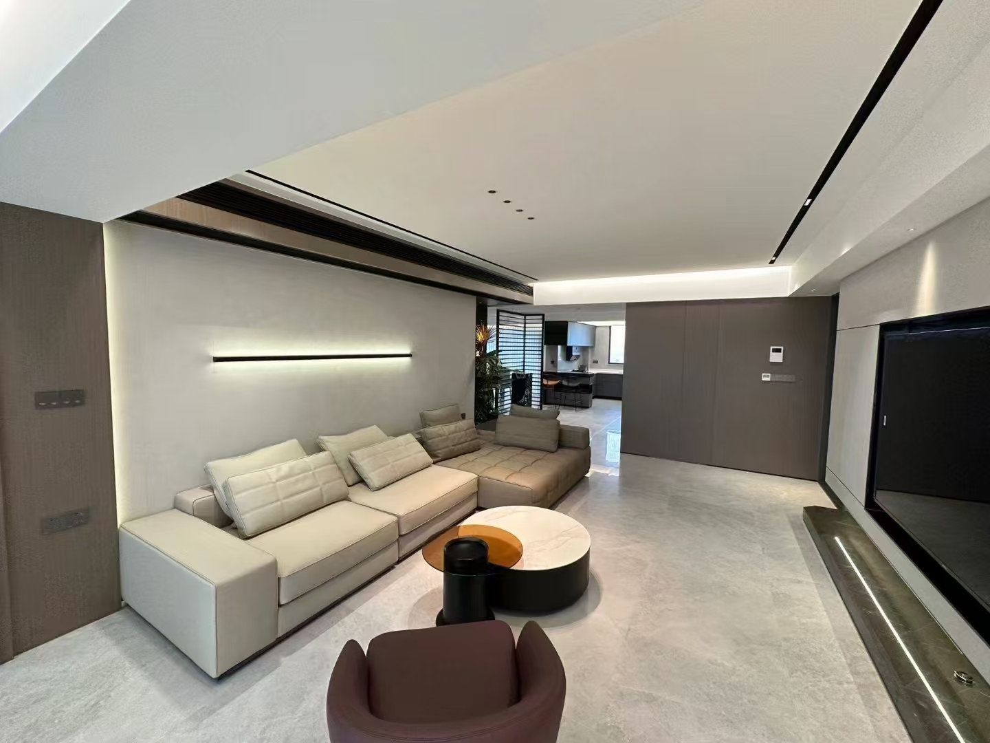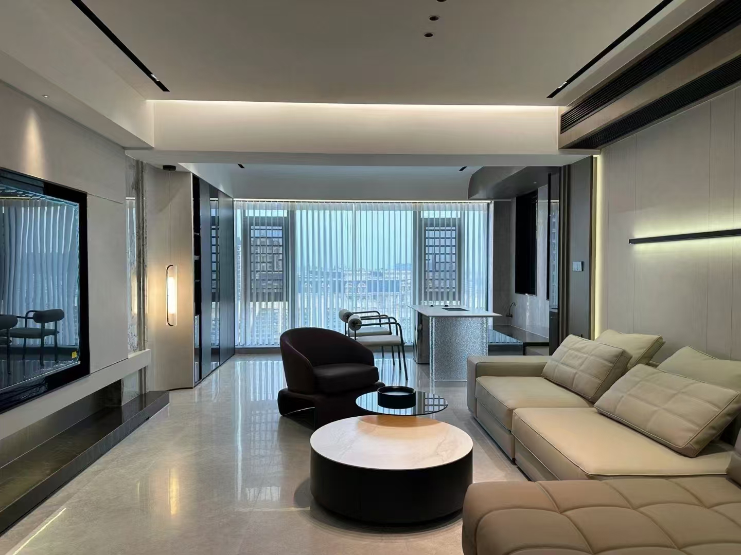 【套餐专享价】每屋优享系列 现代简约 柜体:高光玉灰色 托底缓冲导轨 岩板+PVC环保覆膜工艺 香奈儿 1.25米茶几¥1631