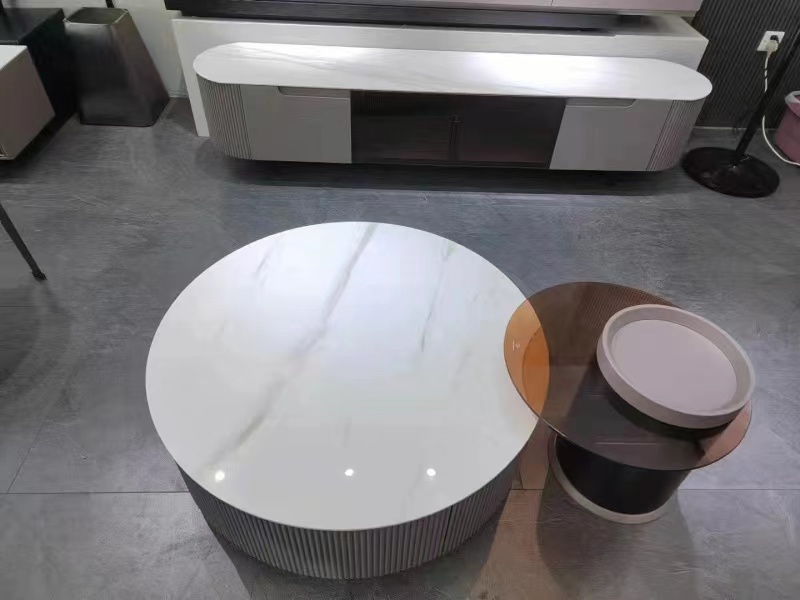 【套餐专享价】每屋优享系列 现代简约 亮光岩板+免漆板+高碳素钢脚 图片色 1.3米茶几¥1631