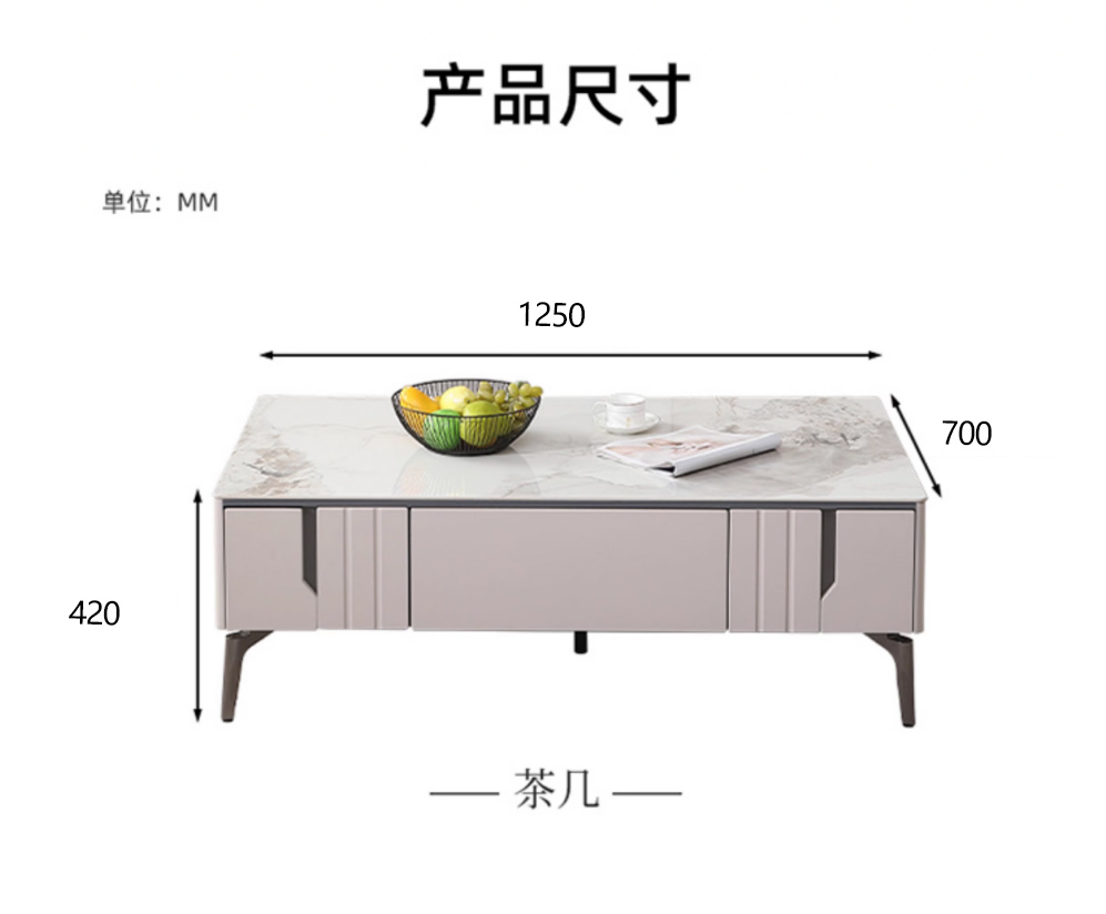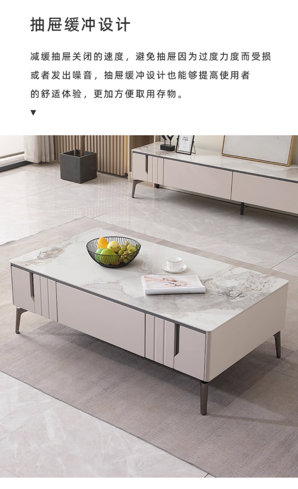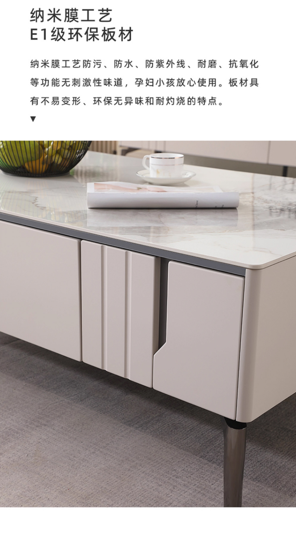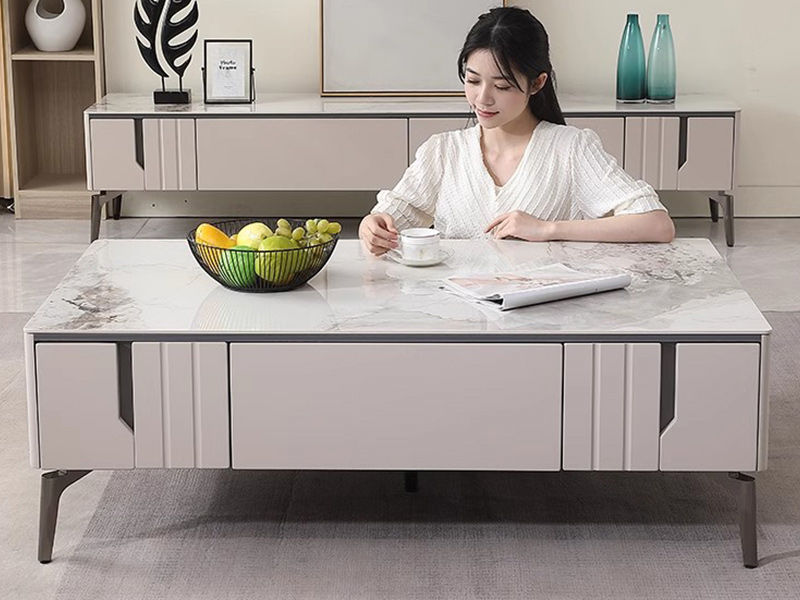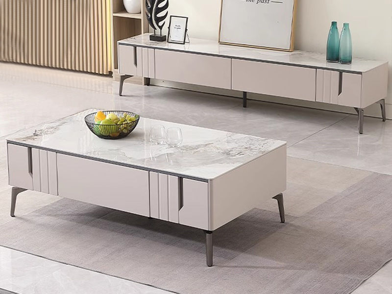 【套餐专享价】每屋优享系列 现代简约 烤漆柜体+亮光雪山石 岩板台面 0.8米组合茶几¥1631