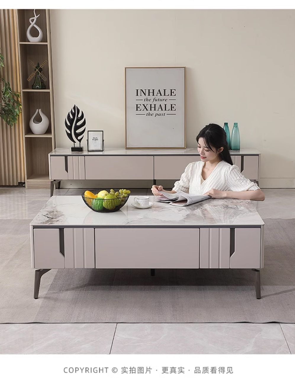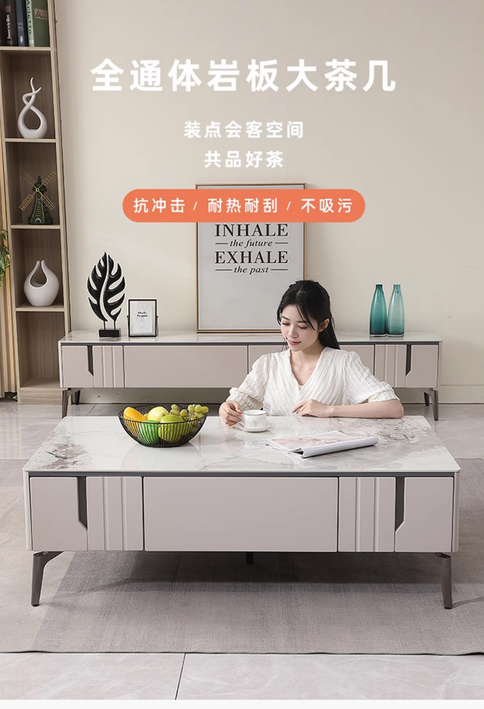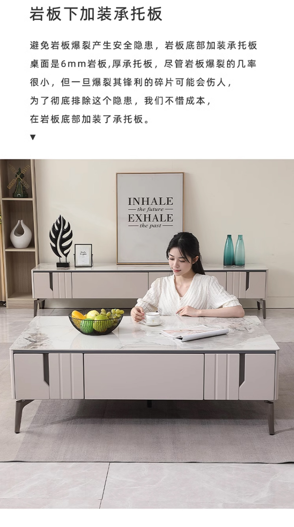 【套餐专享价】每屋优享系列 现代简约 烤漆柜体+亮光雪山石 岩板台面 0.8米组合茶几¥1631
