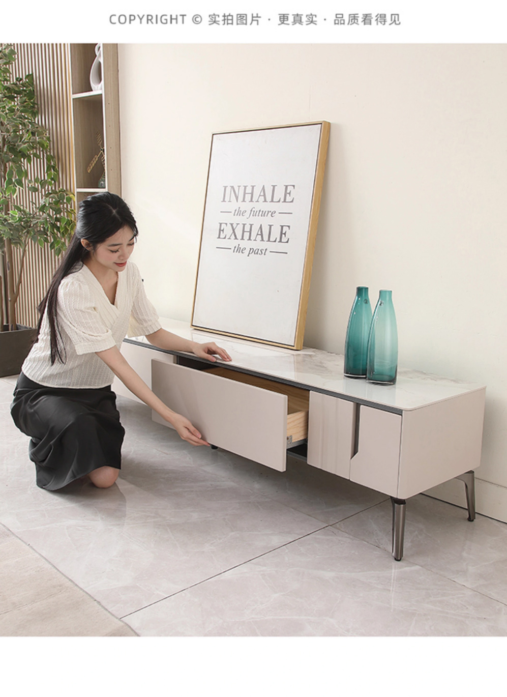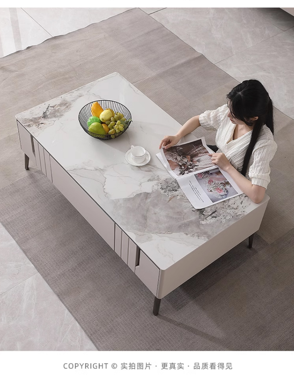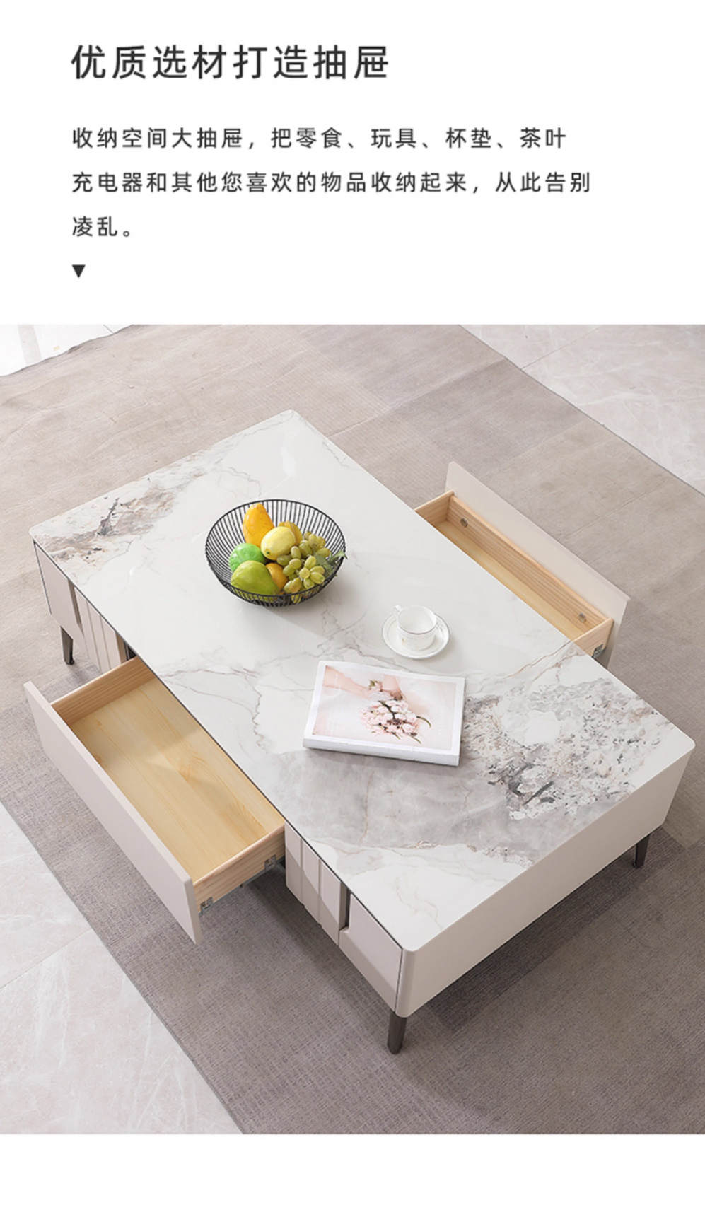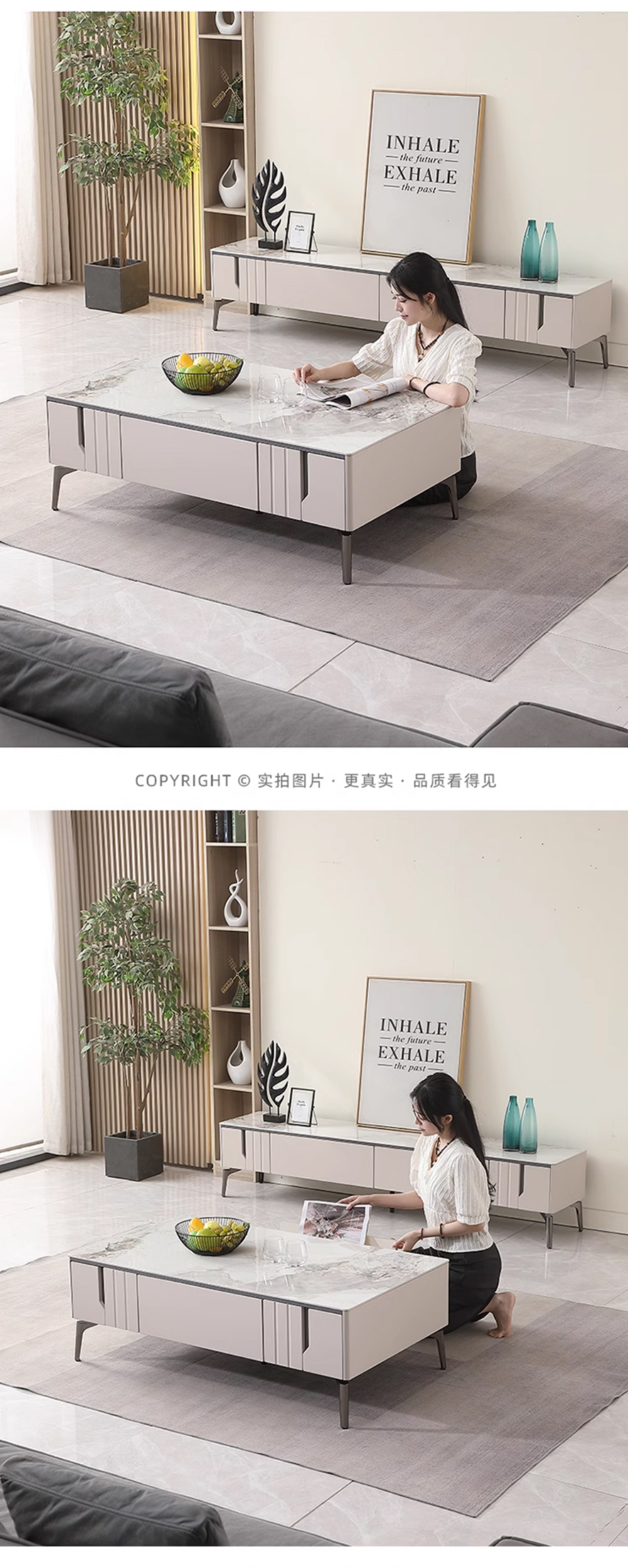 【套餐专享价】每屋优享系列 现代简约 烤漆柜体+亮光雪山石 岩板台面 0.8米组合茶几¥1631
