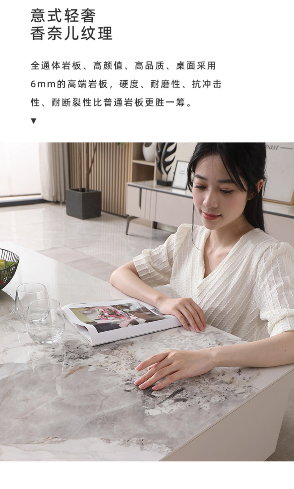 【套餐专享价】每屋优享系列 现代简约 柜体:高光玉灰色 托底缓冲导轨 岩板+PVC环保覆膜工艺 香奈儿 1.25米茶几¥1631