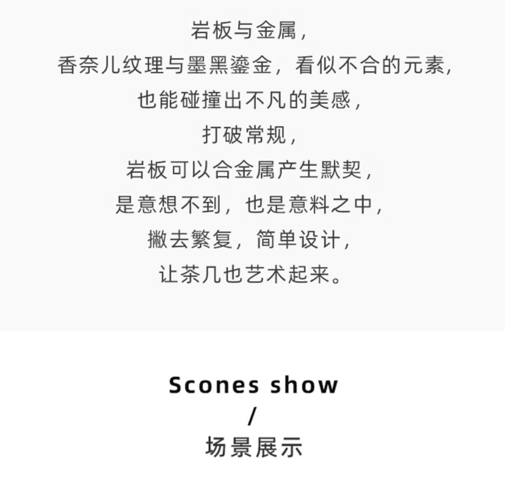 【套餐专享价】每屋优享系列 现代简约 碳素钢脚架+岩板 香奈儿 0.8米组合茶几¥1631