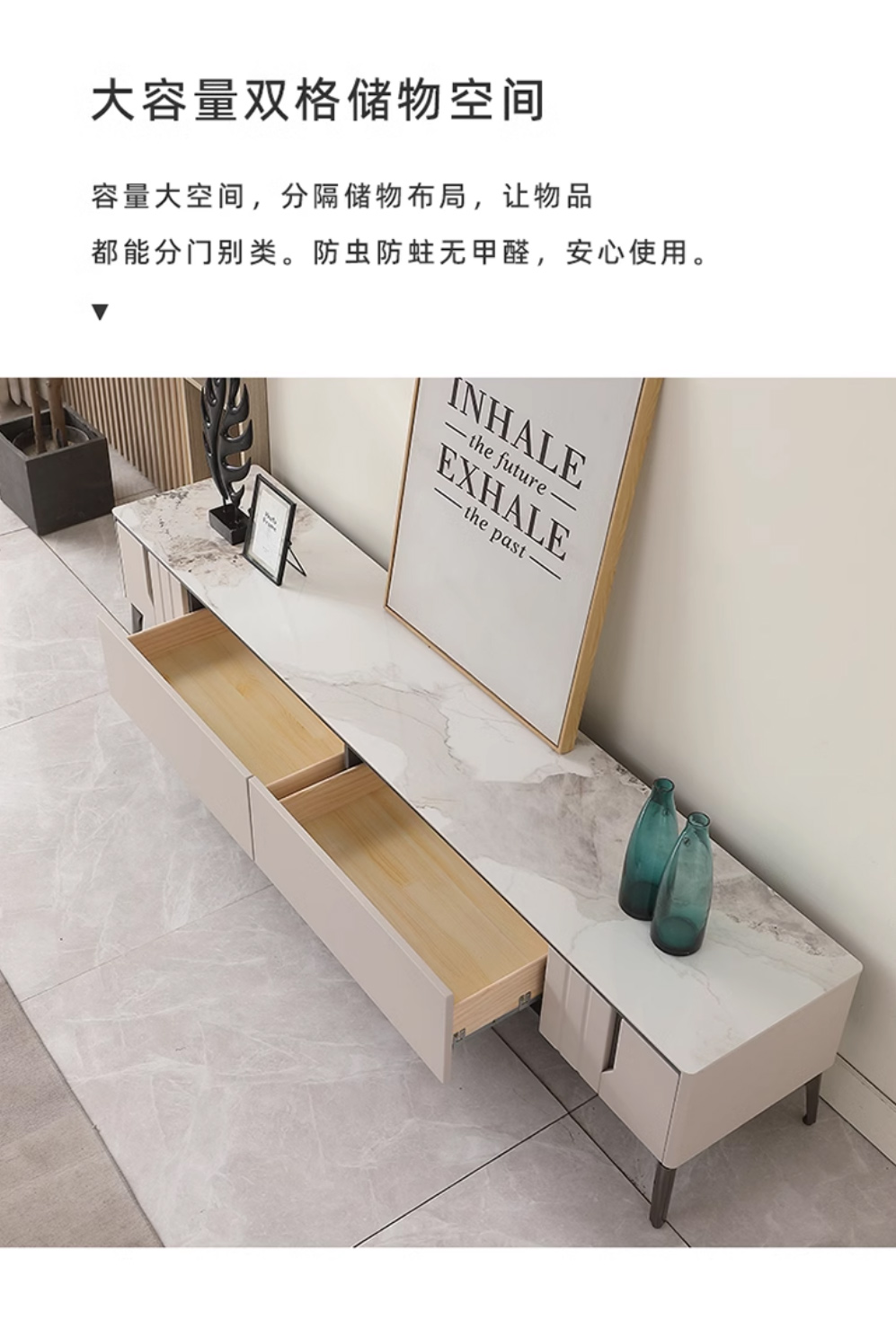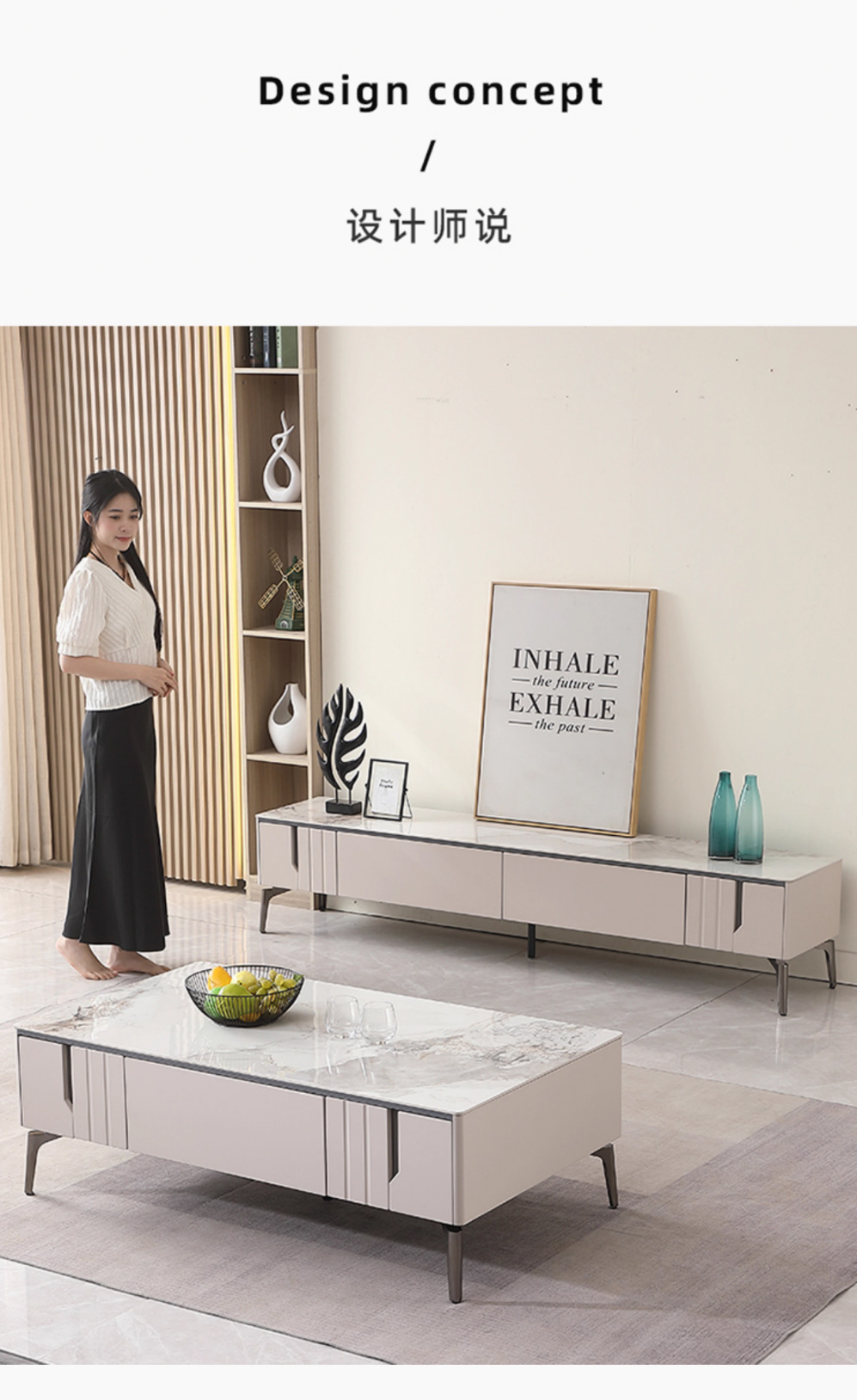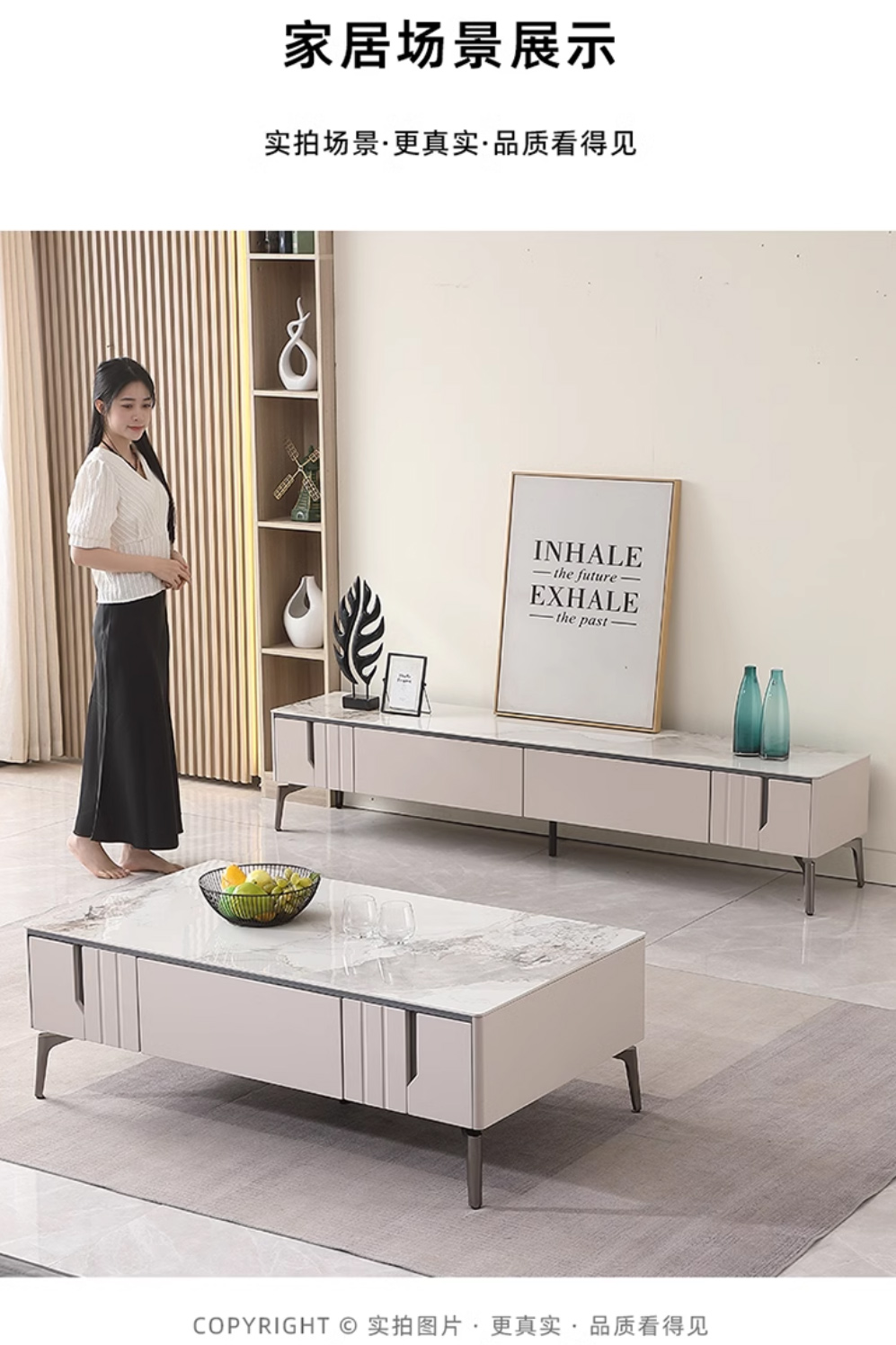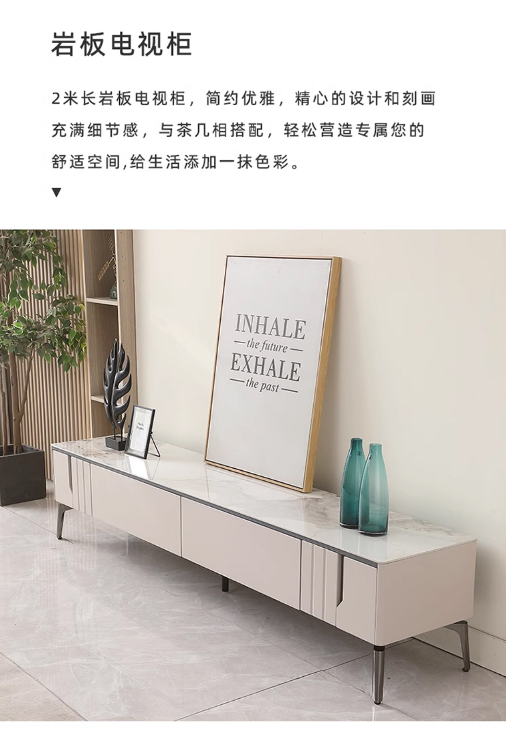 【套餐专享价】每屋优享系列 现代简约 岩板+密度板+碳素 钢五金脚 1.25米茶几+2米电视柜(未开电源孔)