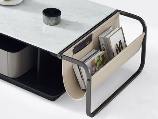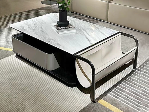 维利品尚 现代简约 新款 超晶石+E1级环保板材+钢琴烤漆+碳素钢+马鞍皮 1.23米长茶几