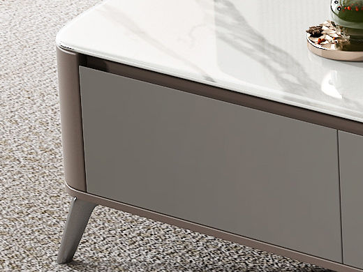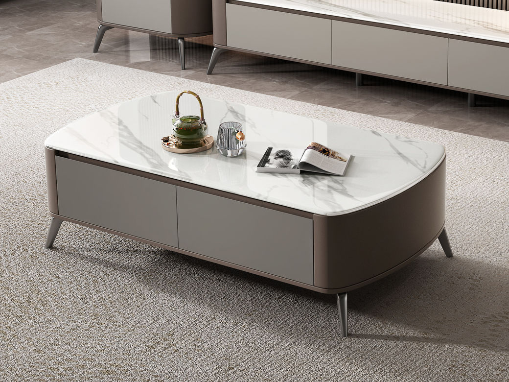 逸澜斯 极简 慕丝白(白龙玉)微晶石+太空灰 环保高密度板+实木+钛金脚 1.3米茶几