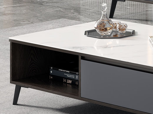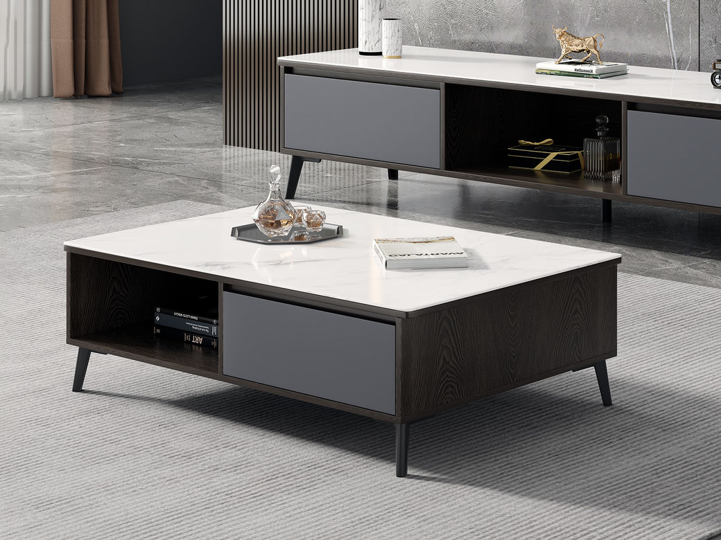 【套餐专享价】每屋优享系列 现代简约 亮光岩板+免漆板+高碳素钢脚 图片色 1.3米茶几¥1631
