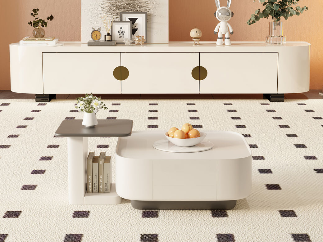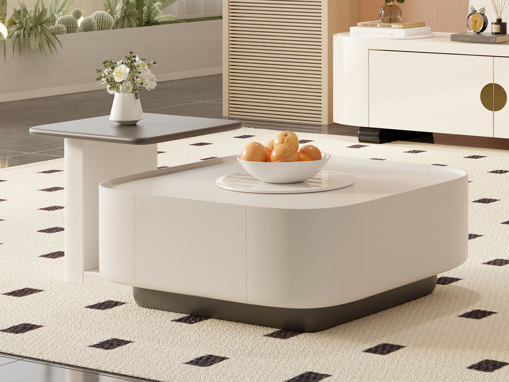 逸澜斯 极简 宾丽白亮光岩板+环保高密度板+实木 1.3米茶几¥4096