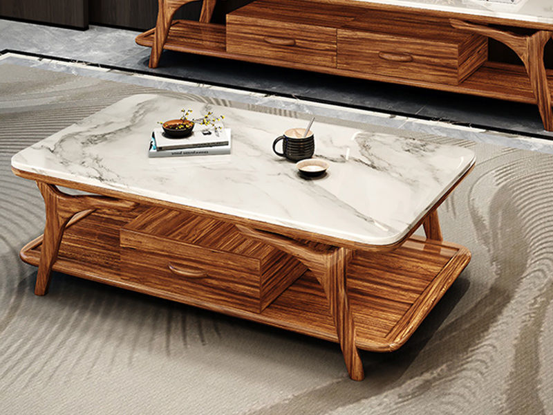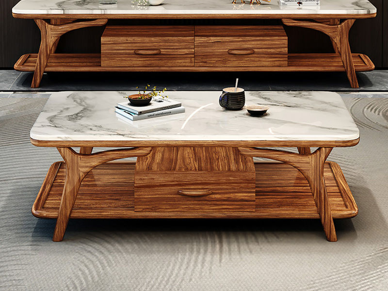 归鹊 新中式 乌金木框架+大理石台面 1.38米茶几¥8313