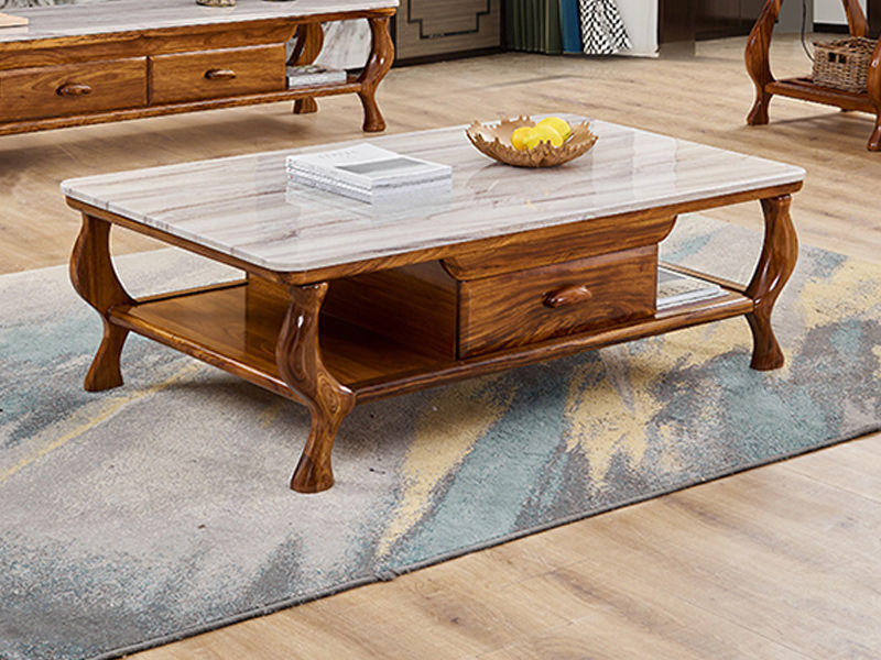 归鹊 新中式 乌金木框架+大理石台面 1.4米茶几¥12326