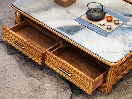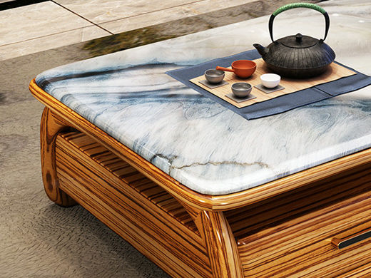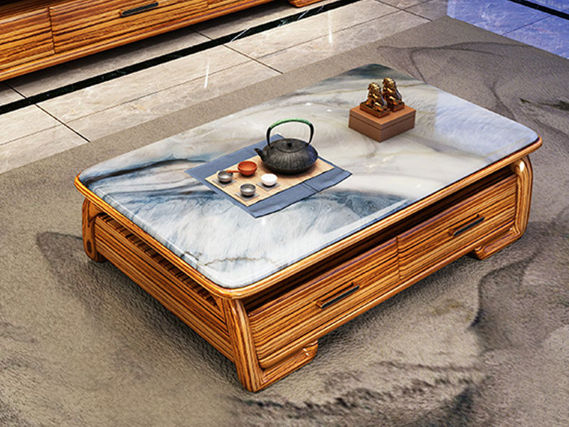 归鹊 新中式 乌金木框架+大理石台面 1.38米茶几¥8313