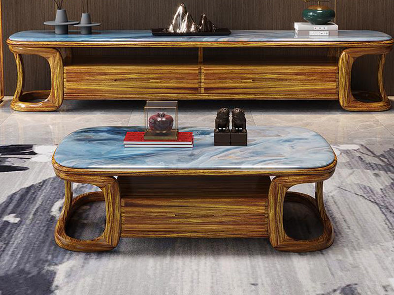 归鹊 新中式 乌金木框架+大理石台面 1.38米茶几¥8313